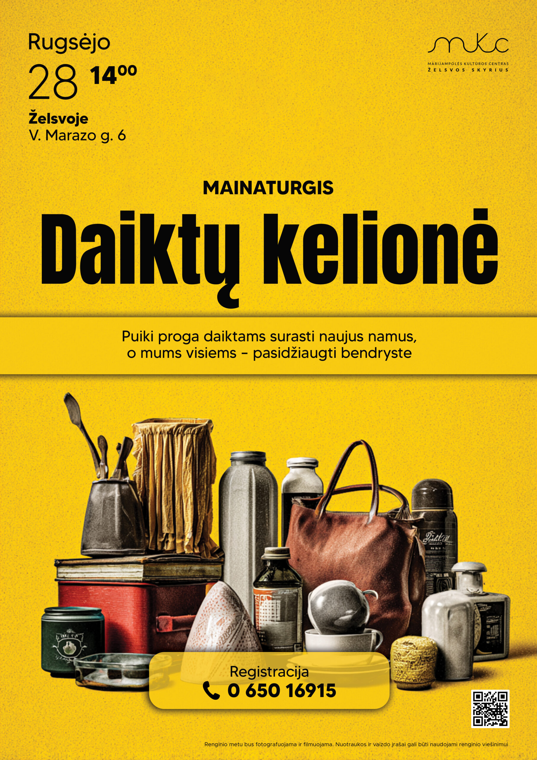 Pagrindinis Renginiai - Marijampolės kultūros centras Teatras Mainaturgis „Daiktų kelionė” | Želsva Mainaturgis „Daiktų kelionė” | Želsva Renginys nemokamas. Būtina išankstinė registracija nurodytais kontaktais Data Rgs 28 2025 Įvykęs! Laikas 14:00 - 14:00 Kategorijos Teatras Dalintis