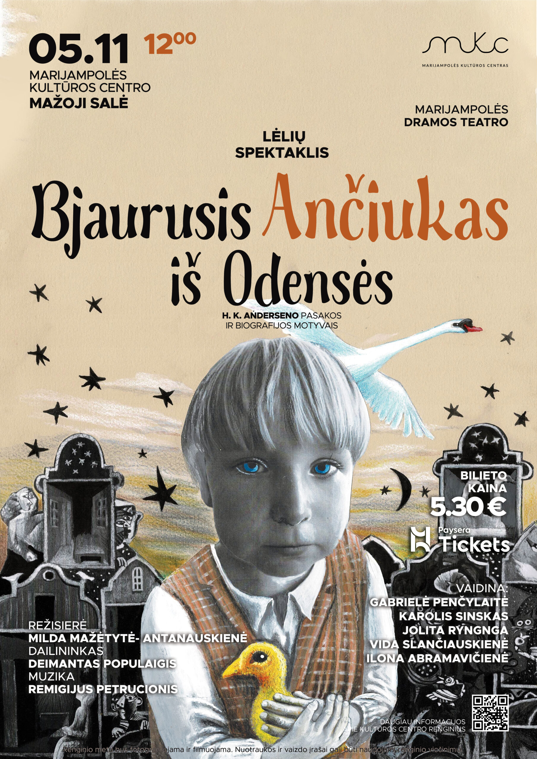 Lėlių teatro spektaklis ,,Bjaurusis ančiukas iš Odensės” (H. K. Anderseno gyvenimo ir to paties pavadinimo pasakos motyvais) mažąjį žiūrovą nukels į Danijos karalystės provincijos kiemą, kuriame tose pačiose balose braido būsimasis pasakininkas ir jo personažas – keistasis bjaurusis ančiukas. Abu jie saviškių atmesti, patiria patyčias. Šis spektaklis yra apie tai, kokį kelią turi nueiti kūrėjas, kol sulaukia pripažinimo ir iš bjauriojo ančiuko pavirsta gražiąja gulbe, kaip sunkiai talentas prasiskina kelius į šlovę. Spektaklis ne tik paliečia jautrią patyčių ir kitoniškumo temą, bet ir suteikia viltį, siūlo išeitį per kūrybiškumo paieškas bei jo atskleidimą.