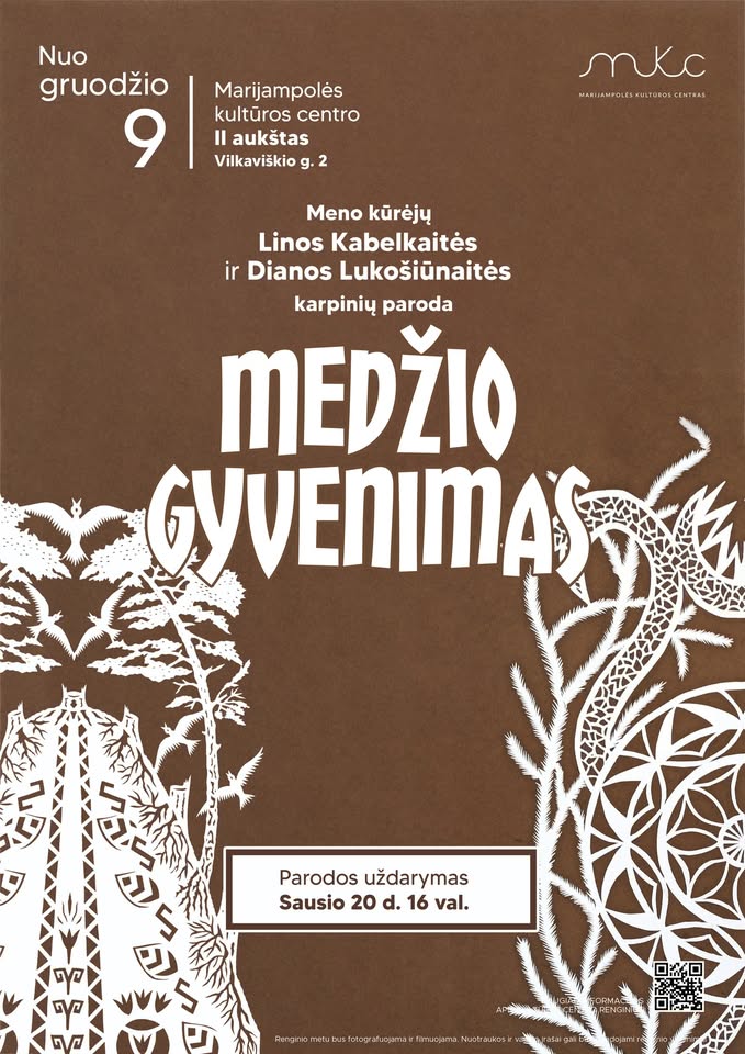 Meno kūrėjų Linos Kabelkaitės ir Dianos Lukošiūnaitės darbai – tai istorija, pasakojama popieriaus raižiniais: apie gamtos cikliškumą, šaknis, stiprybę ir tą tylų atsinaujinimą, kuris vyksta nepastebimai. Čia labai daug kruopštumo ir labai aiškus, poetiškas žmogaus ir gamtos ryšys.