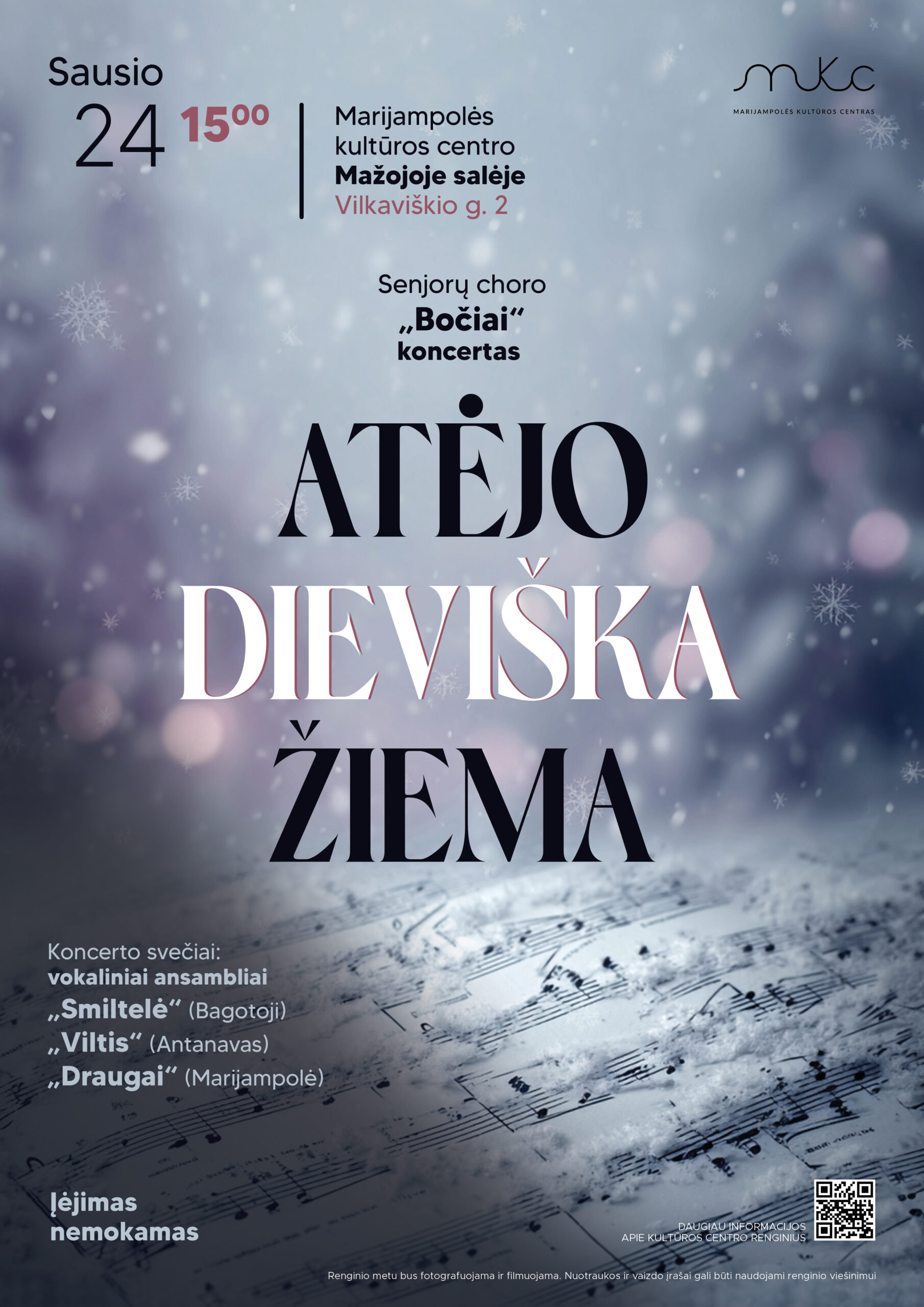 Kviečiame į senjorų choro „Bočiai“ koncertą „Atėjo dieviška žiema“ – žiemišką, jaukų muzikinį susitikimą.