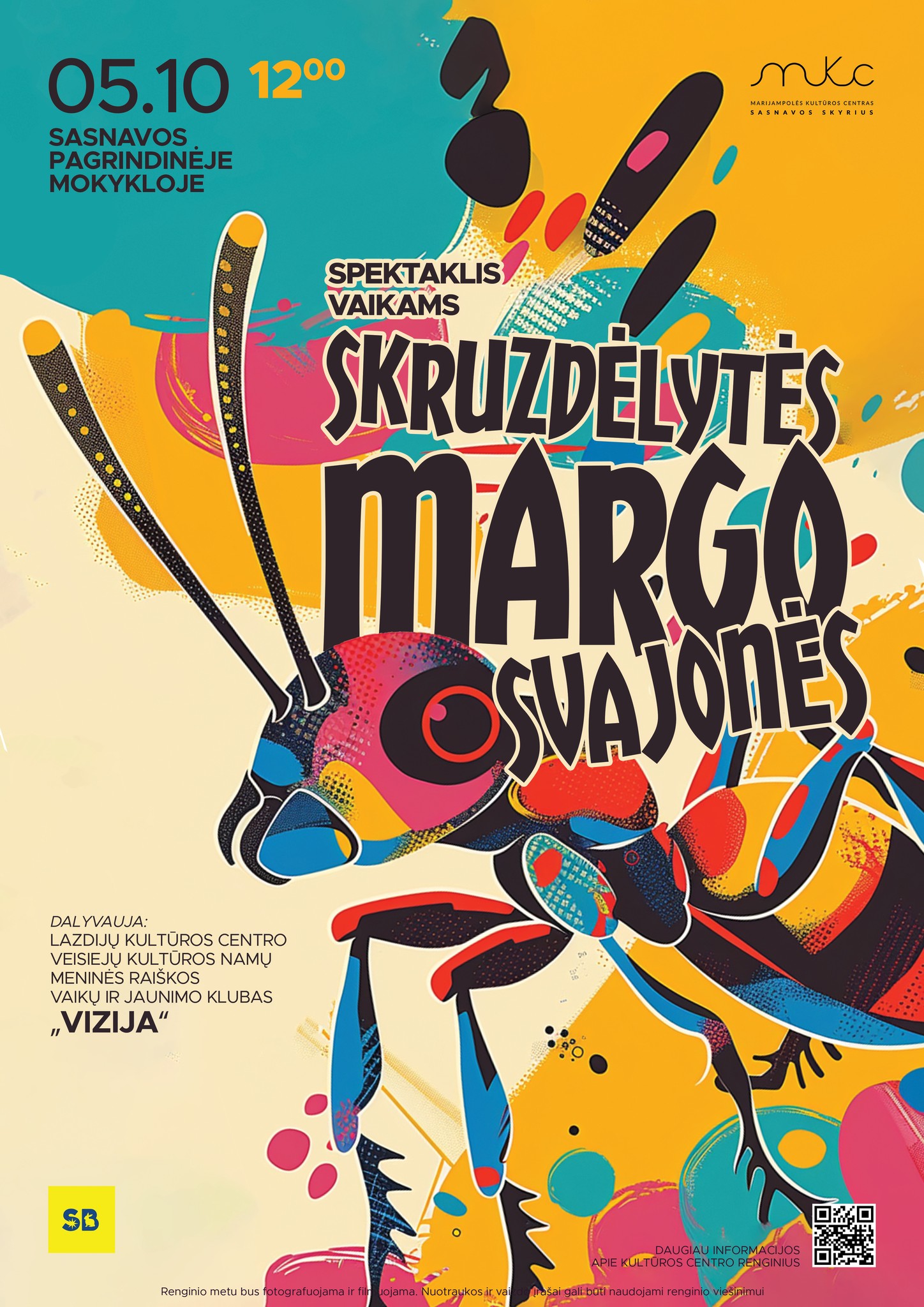 Pagrindinis Renginiai - Marijampolės kultūros centras Teatras Spektaklis vaikams „Skruzdėlytės Margo svajonės” | Sasnava Spektaklis vaikams „Skruzdėlytės Margo svajonės” | Sasnava Renginys nemokamas. Data Geg 10 2024 Įvykęs! Laikas 12:00 - 12:00 Kategorijos Teatras Dalintis