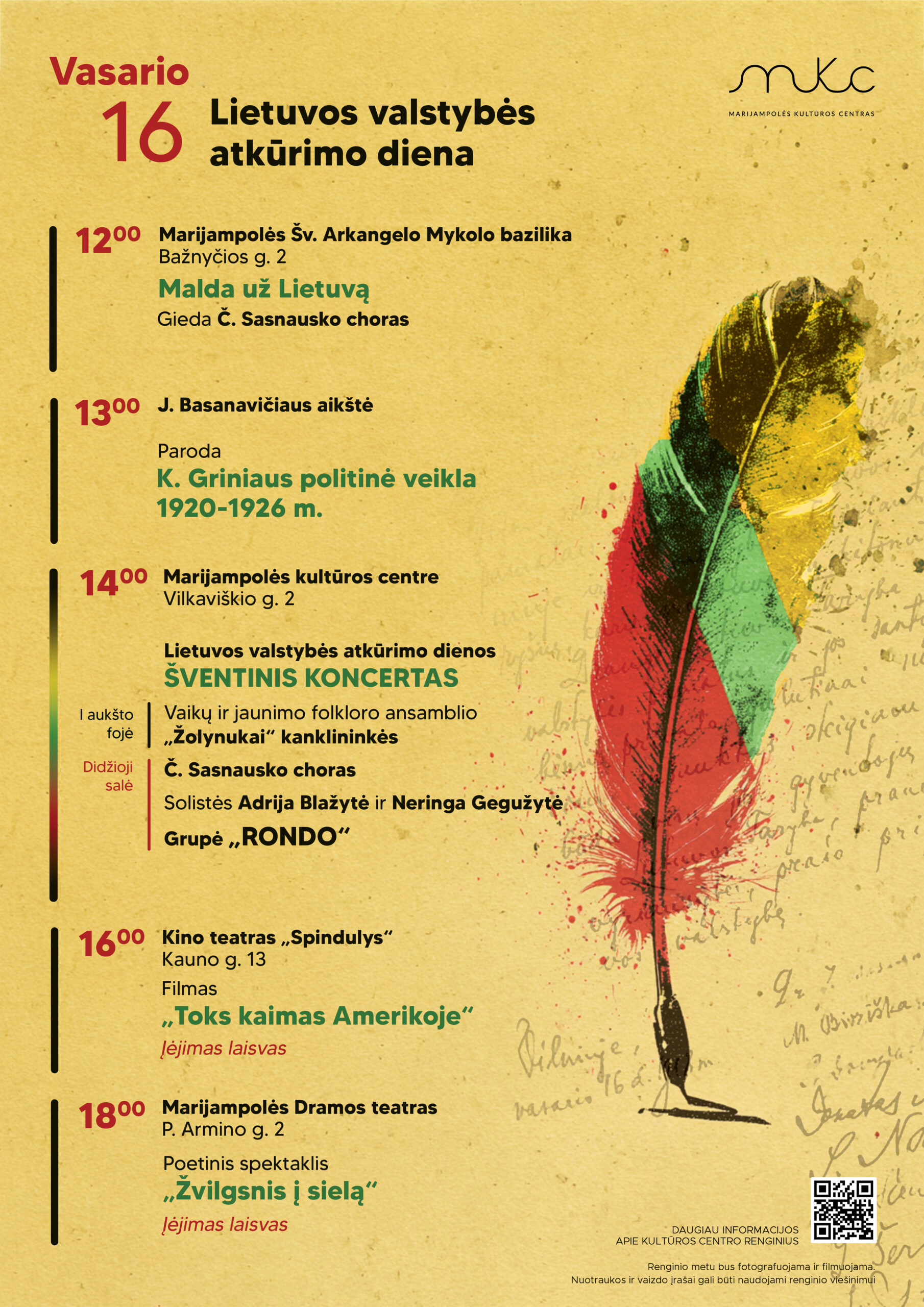 VASARIO 16-OJI | LIETUVOS VALSTYBĖS ATKŪRIMO DIENA | MARIJAMPOLĖ